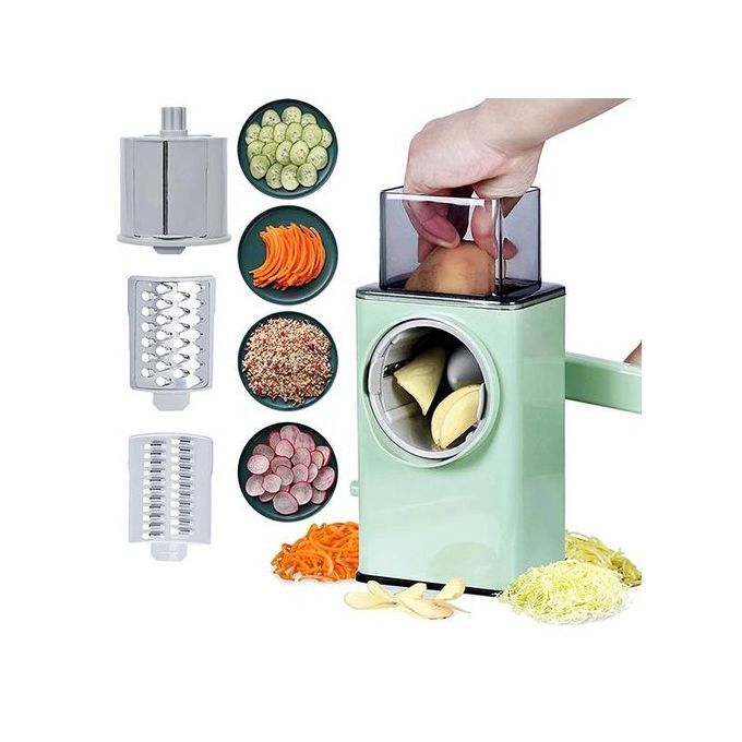 - La conception unique de coupe à tambour rotatif vous permet de passer le moins de temps et d’efforts pour préparer les aliments,