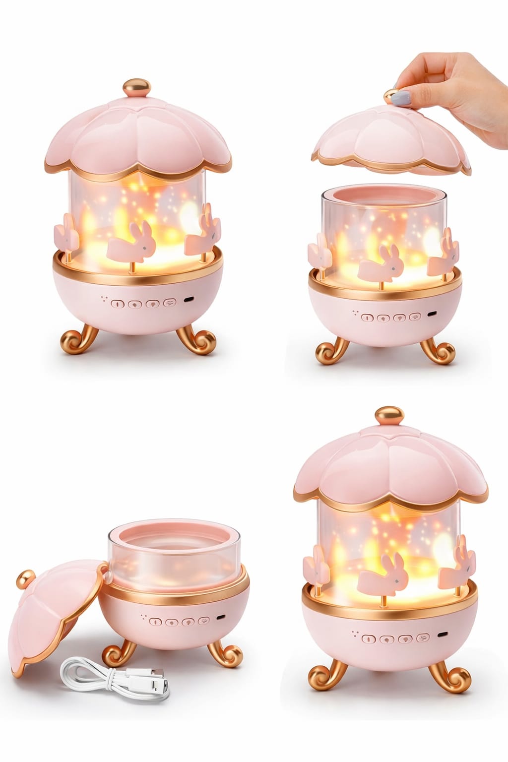 Gardez-la près de votre lit, cette veilleuse vous accompagnera jusqu’au sommeil. Pratique pour les activités nocturnes. Chambre de bébé : Sûre et apaisante pour les enfants et les bébés ! Sa douce lumière crée une ambiance agréable. Salle de jeux : Cette adorable lampe lapin est un bel élément de décoration pour n’importe quelle pièce. Salon : Idéale à suspendre près d’un coin lecture, elle crée une atmosphère paisible. Extérieur : Portable, sans prise. Facile à transporter, c’est l’accessoire parfait pour le camping et les voyages. 6 films de projection : Spécialement conçus pour les enfants, ils pourront admirer un ciel étoilé dans leur chambre.